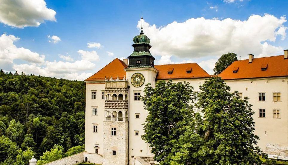 Zamek Piaskowa Skała wznosi się majestatycznie na wysokiej skale wapiennej, stanowiąc jeden z najwspanialszych przykładów architektury renesansowej w Polsce. Pierwotna warownia powstała w XIV wieku z inicjatywy króla Kazimierza Wielkiego, jako część systemu obronnego Małopolski. W XVI wieku zamek przeszedł gruntowną przebudowę, przekształcając się w reprezentacyjną rezydencję magnacką.